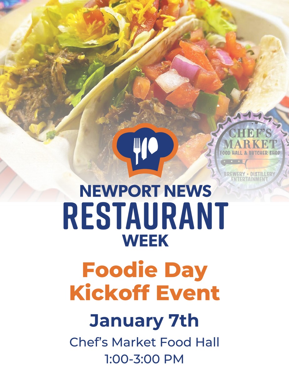 We’re excited to kick off Newport News Restaurant Week with a Foodie Day event next Wednesday, January 7.